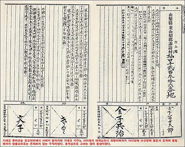 Копия семейного реестра Фумико, которая была зарегистрирована как пятая дочь своего деда.