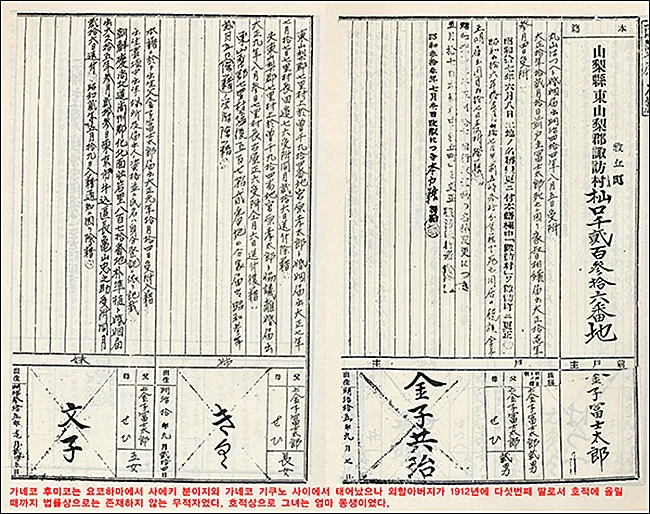 Копия семейного реестра Фумико Канэко, которая была зарегистрирована как пятая дочь своего деда по материнской линии.