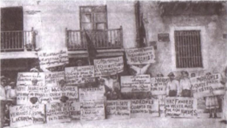 Другим важным центром конфликта между мастями и ВКТ был район Веракруса — Орисабы. Здесь энергично действовали анархистские рабочие активисты во главе с портным Эроном Проалем, с 1919 г. действовала Федерация трудящихся порта Веракрус. В начале 1922 г. Проаль и другие анархо-синдикалисты из ВКТ провели серию митингов против увеличения платы за жилье и произвола частной полиции собственников. Началась стачка съемщиков жилья. Когда руководство КРОМ отказалось ее поддержать, группа членов Союза моряков вышла из нее, объединилась с анархистами, и З февраля 1922 г. был официально создан Революционный профсоюз съемщиков жилья во главе с Проалем. В течение последующих месяцев стачка расширялась, сопровождаясь боями с частной полицией собственников, которую постепенно удалось вытеснить с улиц. По городу неоднократно прокатывались массовые демонстрации с участием до 10 тысяч человек. Рабочим удалось добиться снижения платы, но они намеревались продолжать борьбу. Для агитации крестьян в поддержку движения был направлен Урсуло Гальван. 9 мая 1922 г. на огромной демонстрации в Веракрусе Проаль объявил о начале борьбы за снижение цен на продукты питания и одежду и их замораживание. В город были введены войска. Тем временем движение покинули коммунисты, и 30 июня Проаль заявил, что союз съемщиков будет «революционным, антиполитическим и подлинно коммунистическим». Однако после крупной демонстрации 5 июля войска неожиданно окружили и в ходе неравного боя взяли штурмом штаб-квартиру союза. Десятки человек были убиты, Проаль арестован, затем сослан. У. Гальван создал Лигу аграрных общин и профсоюзов штата Веракрус, но вскоре отошел от анархизма и стал сотрудничать с губернатором-социалистом А. Техадой [93].