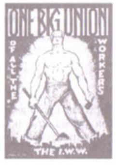 В США Индустриальные рабочие мира возглавили борьбу против участия страны в Первой мировой войне. Летом 1917 г. они организовали крупнейшую в истории США стачку в лесной промышленности (на Северо-западе): она была объявлена «изменой» и подавлена. Репрессии нарастали. «По всей стране преследовали активистов ИРМ, вываливая их в дегте и перьях в Оклахоме, депортируя из Аризоны, арестовывая и отдавая под суд за ”измену” в Чикаго... — вспоминала американская анархистка Эмма Гольдман. — Наиболее возмутительным было, конечно же, двойное убийство Фрэнка Липла, руководителя ИРМ, и одного товарища, который, к своему несчастью, носил немецкую фамилию. Фрэнк Литгл был инвалидом. Бандиты в масках похитили его среди ночи из его жилища в Монтане и увезли к железной дороге, где повесили. С другим иностранным врагом поступили таким же образом... Введение в действие закона о шпионаже имело результатом то, что гражданские и военные тюрьмы переполнились. Билл Хейвуд (лидер ИРМ. — В.Д.) был приговорен к 20 годам тюремного заключения, а 10 активист_ов ИРМ — к заключению сроком от года до 10 лет» [7].