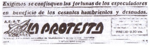 Выпуск «Ла Протеста» был сно ва приостановлен. Хотя затем его удалось возобновить (газета стала выходить два раза в неделю), в конце года бюллетень МАТ сооб щал, что «возрождение рабочего движения идет медленно» [16]. Со брать новый конгресс ФОРА так и не удалось.