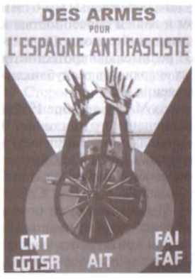 Газета «Лё Комба сандикалист» объясняла (27 мая 1938 г.), что борьба с фашизмом, как ее понимают анархо-синдикалисты, не означает поддержку идеи войны с фашистскими государствами. Вместо этого они ратовали за свободную доставку оружия Испании и экономические санкции против фашистских стран72.