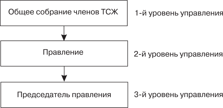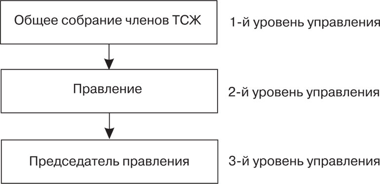 Второй ступенью в иерархии организационной структуры системы управления ТСЖ является правление, на которое возложены исполнительные функции и которое подотчетно общему собранию. Обязанности правления определены в ст. 148 ЖК РФ и уставе ТСЖ.