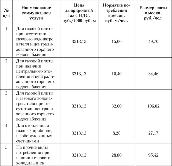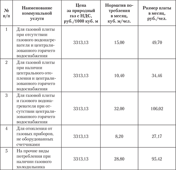 Примечание: Цена за кубометр природного газа при наличии приборов учета равна 3,31313 руб.