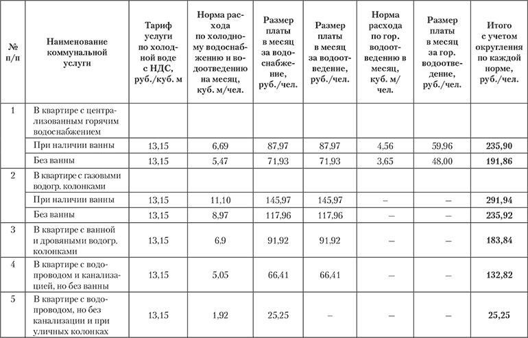 Стоимость холодной воды в месяц на 2010 г. для квартир с различным оборудованием приведена в табл. 3.1.