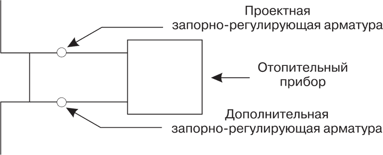 В современных системах отопления с поквартирным автоматическим регулированием температуры и счетчиками расхода тепла целесообразно заранее предусматривать возможность отключения каждого отопительного прибора.