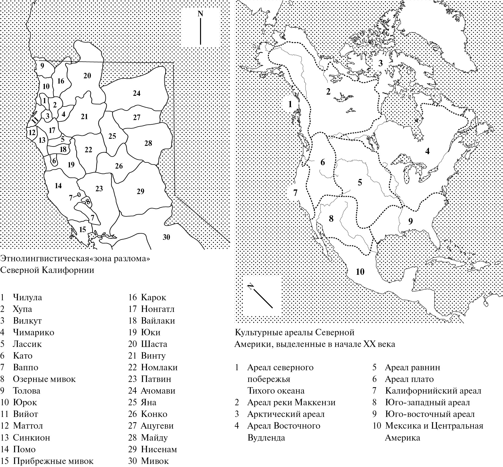 Но как мы объясним различия между двумя этими культурными ареалами? Начнем ли мы с институциональной структуры (на Северо-Западном побережье существовала система рангов и большое значение придавалось потлачу; в Калифорнии важную роль играли деньги и частная собственность) и затем попытаемся понять, каким образом она способствовала формированию этоса каждого из обществ? Или же сначала формируется этос — определенное представление о природе человека и его роли в космологическом порядке, — а затем из него вырастают институциональные структуры? Или же различия в институциональной структуре и этосе — всего лишь следствие различных способов технической адаптации к окружающей среде?